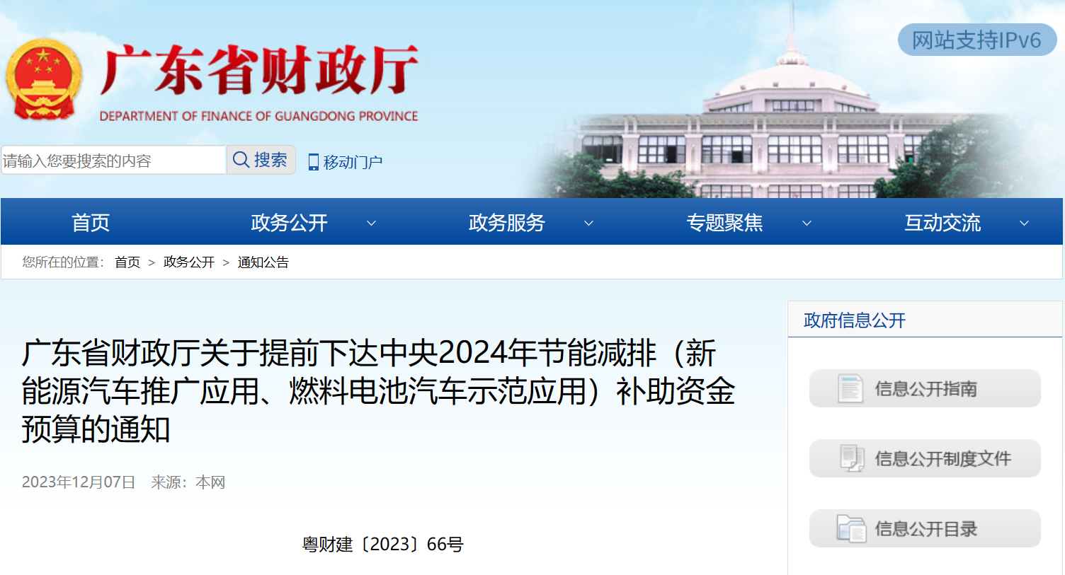 7687萬元!廣東(dōng)省財政(zhèng)廳提前下達中央2024年燃料電池汽車示範(fàn)應用補助資金預算